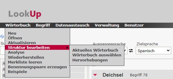 Menü “Wörterbuch”#