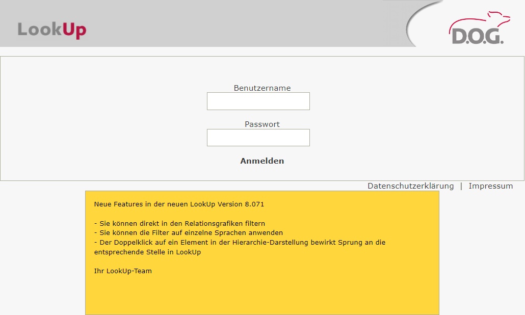 Das Anmeldefenster von LookUp sieht wie folgt aus: