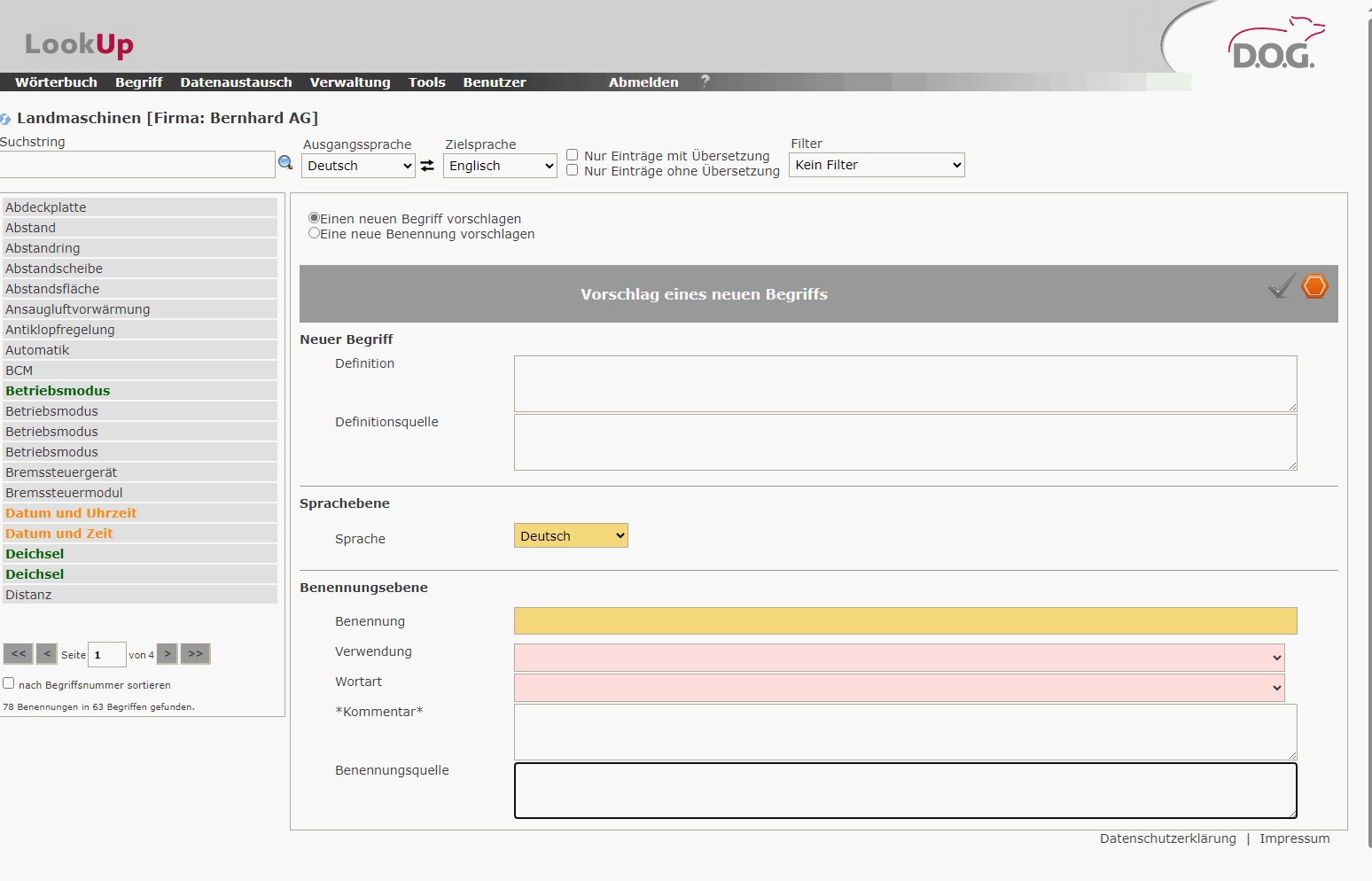 Entscheiden Sie hier, ob Sie eine neue Benennung zum aktiven Begriff oder einen neuen Begriff vorschlagen möchten.