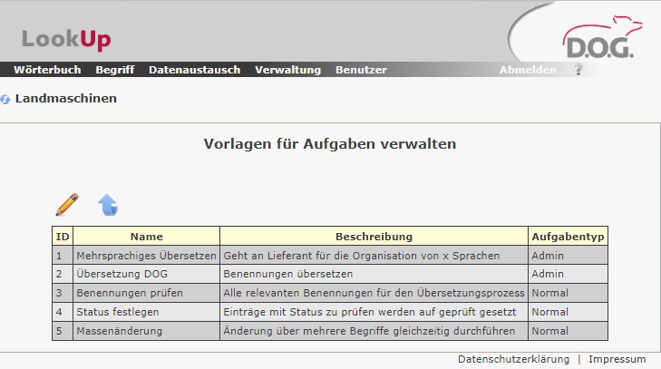 Als erstes möchten Sie Standardaufgaben definieren. Diese Arbeit wird in der Regel am Anfang der Terminologiearbeit einmalig definiert. Nur wenn neue Prozesse oder Aufgaben entstehen, ist es erforderlich, weitere Aufgabentypen zu definieren.
