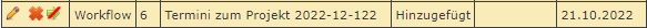 Wenn der grüne Pfeil neben dem Workflownamen mit einem roten Strich durchgestrichen ist, liegt es daran, dass er keine zu bearbeitenden Termini enthält. Fügen Sie diese noch hinzu, indem Sie den Workflow editieren und die zu bearbeitenden Termini zuweisen.