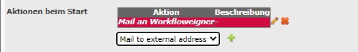 Wenn Sie einen weiteren Workflowschritt (Aktion) aus der Auswahlliste auswählen möchten, klicken Sie auf das Plus-Zeichen, um sie dem Workflow zuzufügen.