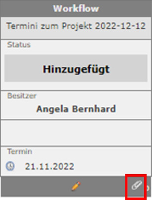 Solange der Workflow nicht gestartet ist, können Sie bereits fertige Aufgaben jederzeit editieren oder löschen, indem Sie auf die entsprechenden Symbole (Stift oder Kreuz) klicken.