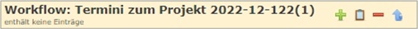 Wenn der grüne Pfeil neben dem Workflownamen mit einem roten Strich durchgestrichen ist, liegt es daran, dass er keine zu bearbeitenden Termini enthält. Fügen Sie diese noch hinzu, indem Sie den Workflow editieren und die zu bearbeitenden Termini zuweisen.