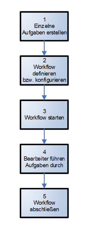 Workflows bzw. Workflowvorlagen werden definiert, die diese Standardaufgaben verwenden und werden einzelnen Mitarbeitern zugewiesen.