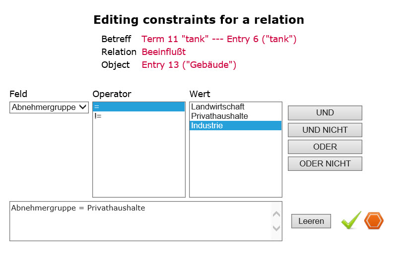 Wählen Sie nun im Auswahlfeld die Relation, die Sie verwenden möchten und klicken Sie auf eines der folgenden Symbole, um die nächste Aktion zu starten: